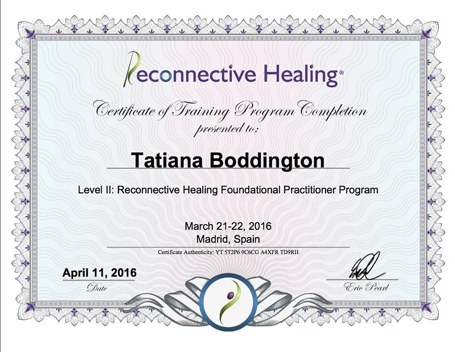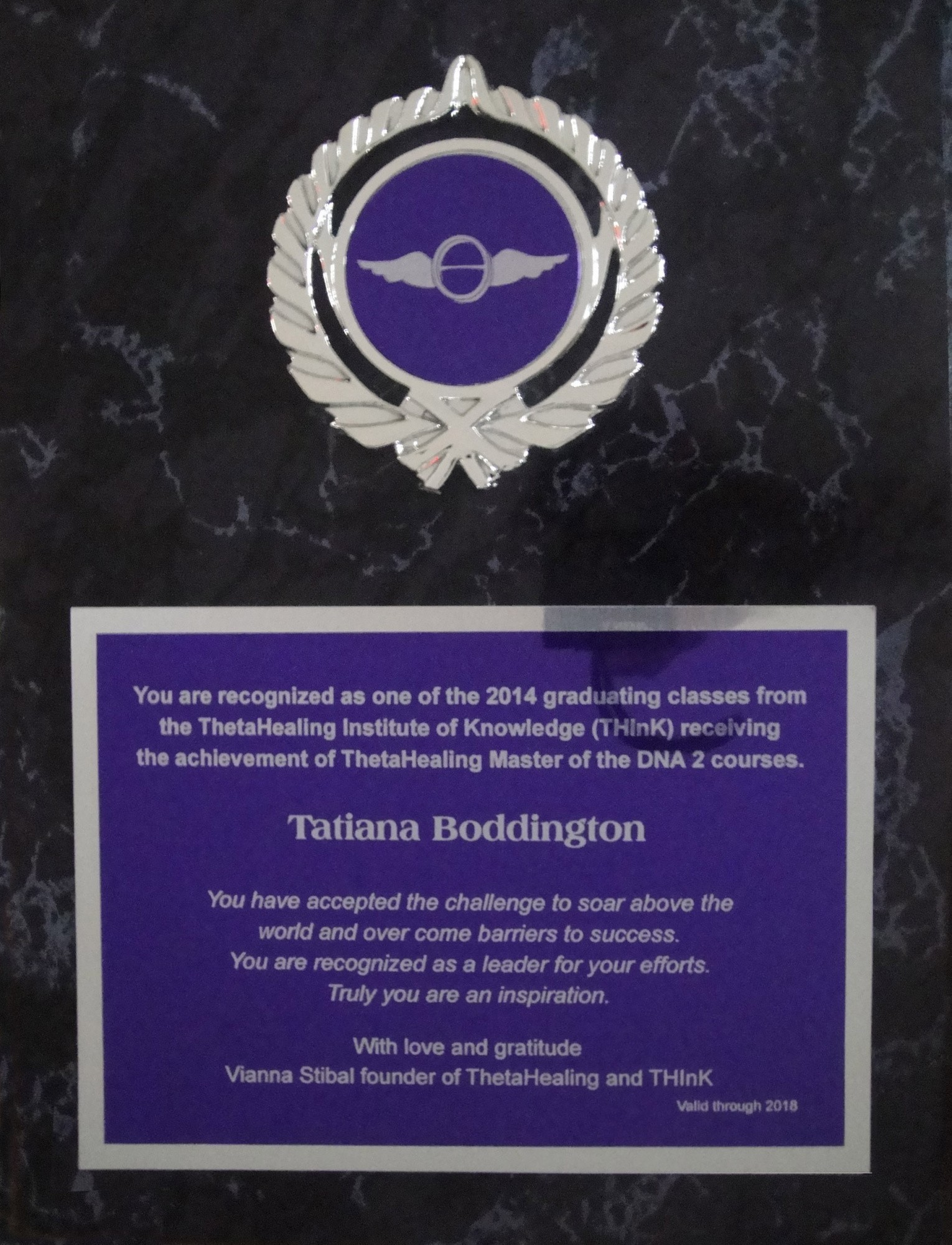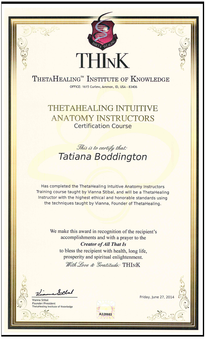 Татьяна Боддингтон проходила обучение целительству в Хорватии и Лондоне. Была слушательницей тренингов основателя методики Тета-Хилинг Вианы Стайбл и на данный момент имеет степень Магистра и Мастера Тета-Хилинга.