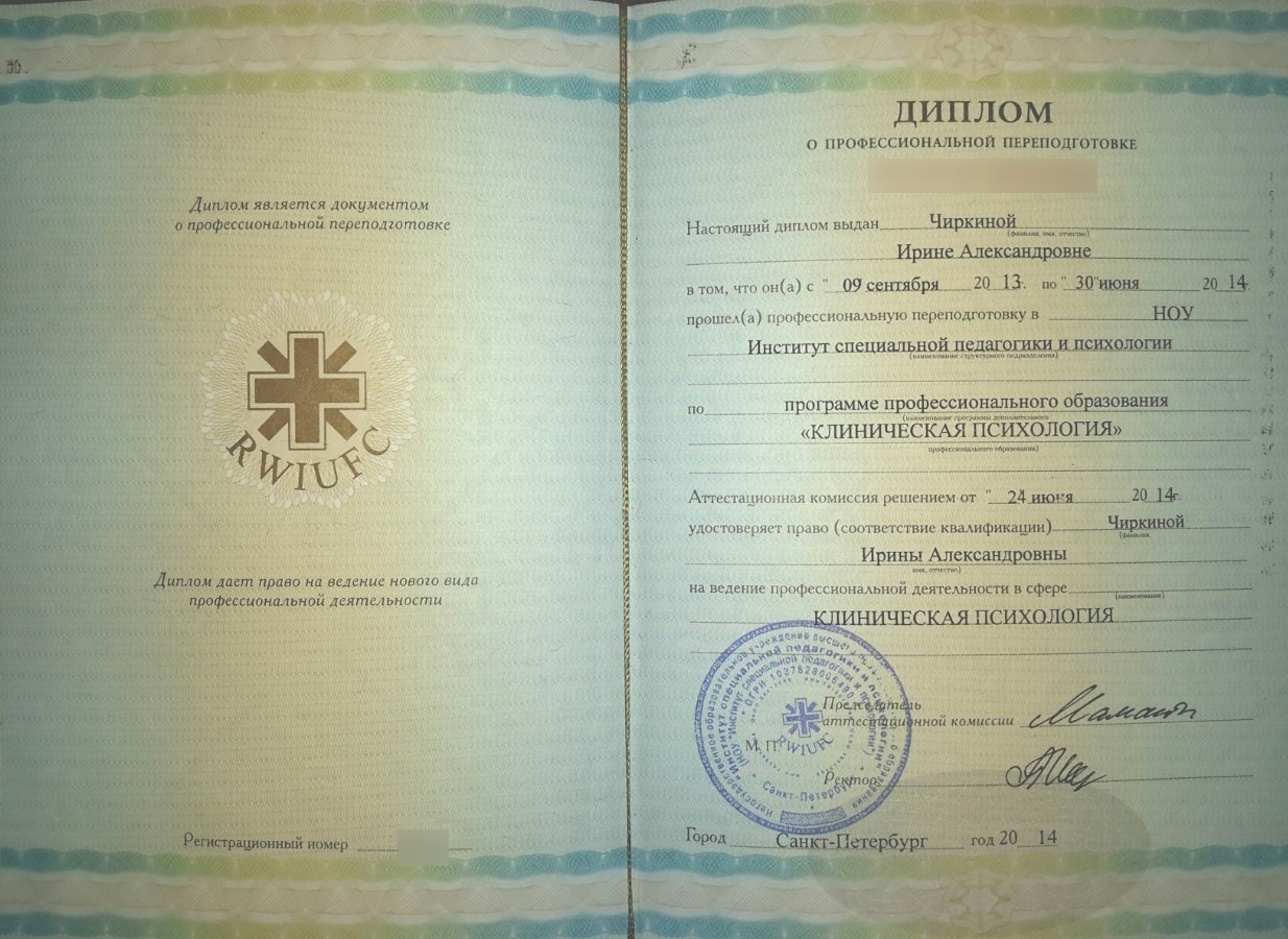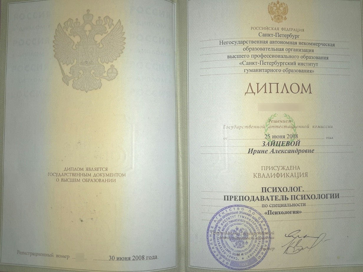 ОбразованиеСПбИГО, 2008 г., факультет психологии.