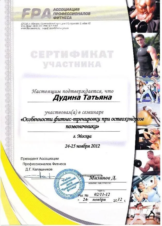 Татьяна дала возможность получить практический опыт в оценке физического состояния участников. Дала инструменты и показала способы для профессионального проведения тестирования и работы с клиентами.