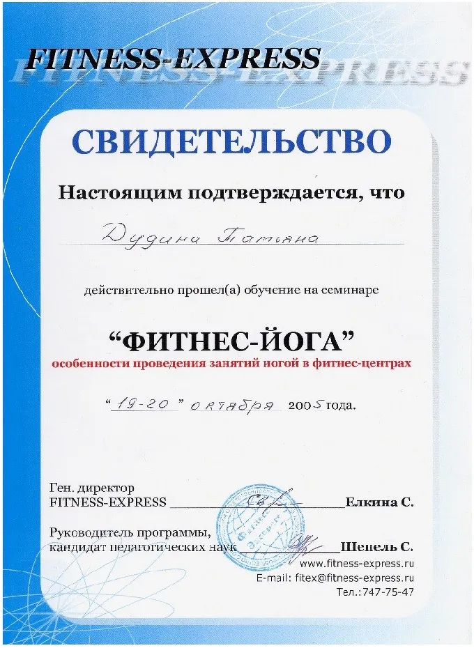 Татьяна Дудина Йогатерапевт, специалист ЛФК