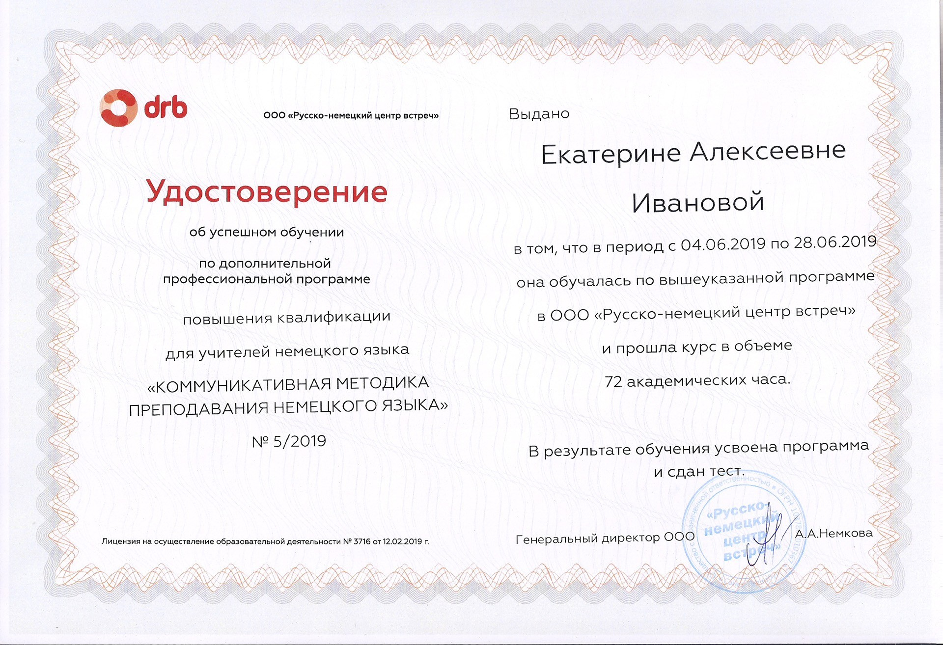 Повышение квалификации «Коммуникативная методика преподавания немецкого языка».