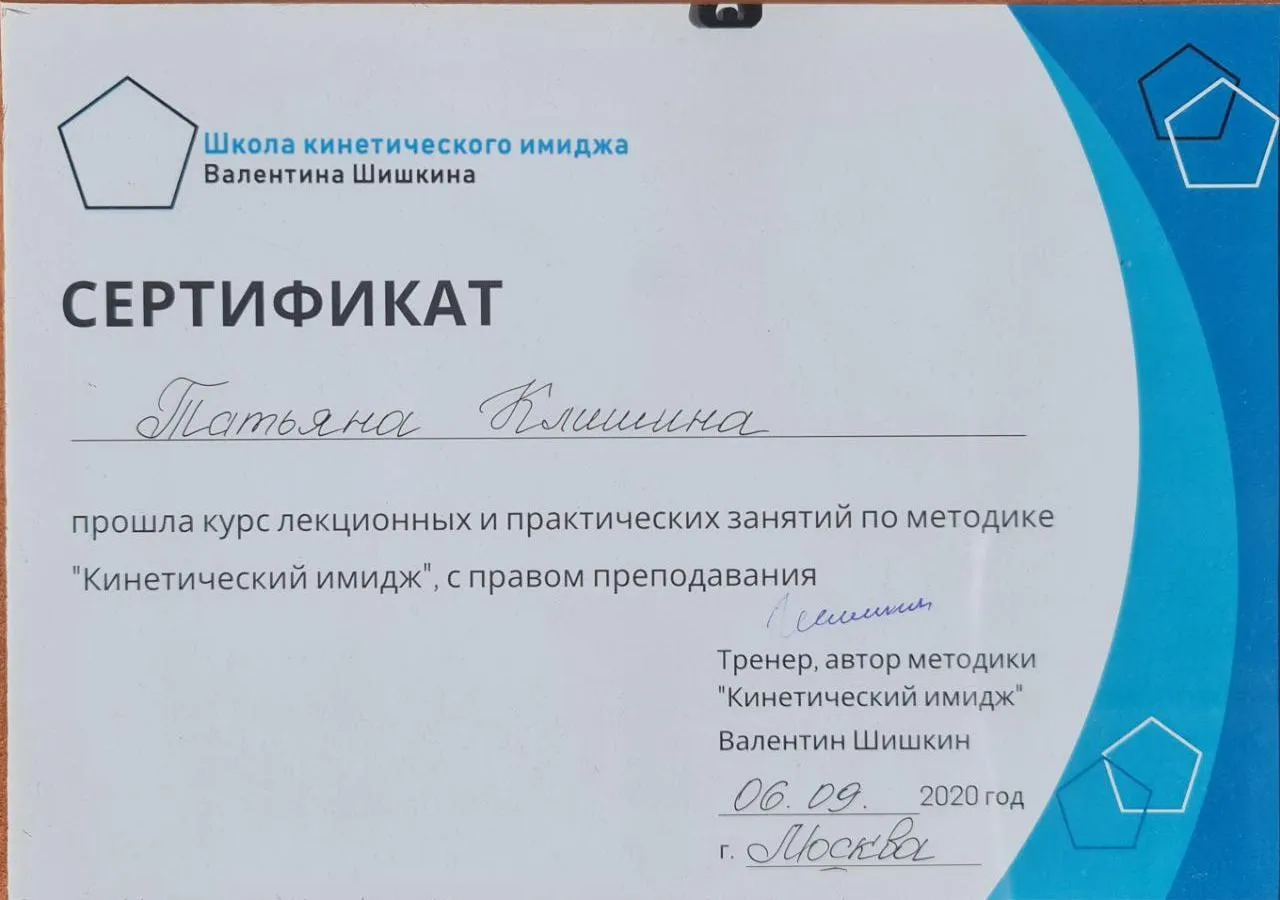 Татьяна Клишина: «Объединяю ваше состояние с впечатлением. О вас через язык тела, стиль и новое мышление. Я не обещаю, а делаю. Работаю на трех уровнях: язык тела, стиль и мышление. Применяю методики кинетического интеллекта, психологии, имидж-стратегии».
