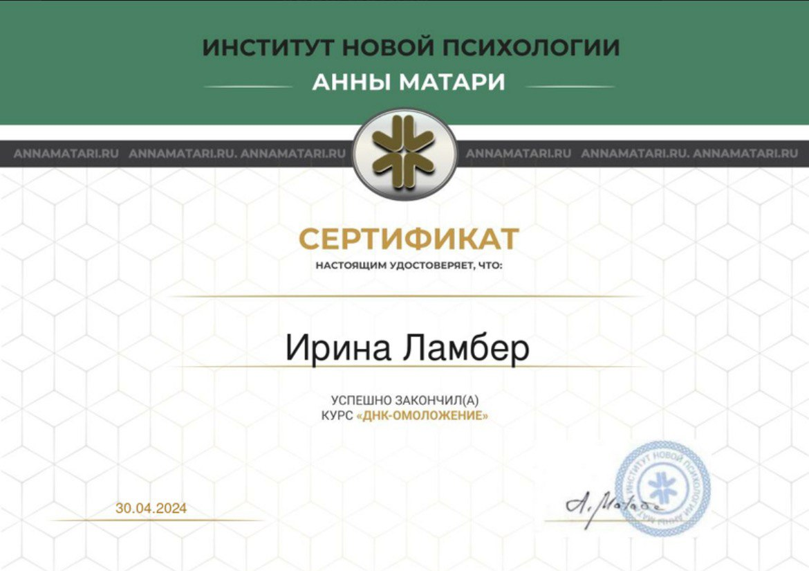 Записывайтесь на курсы Ирины Ламбер — исцелите все сферы жизни, родовые программы и научитесь достигать поставленных целей. Улучшите не только физическое здоровье, но и обретете внутреннюю гармонию и психическую устойчивость.