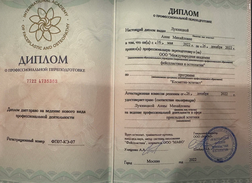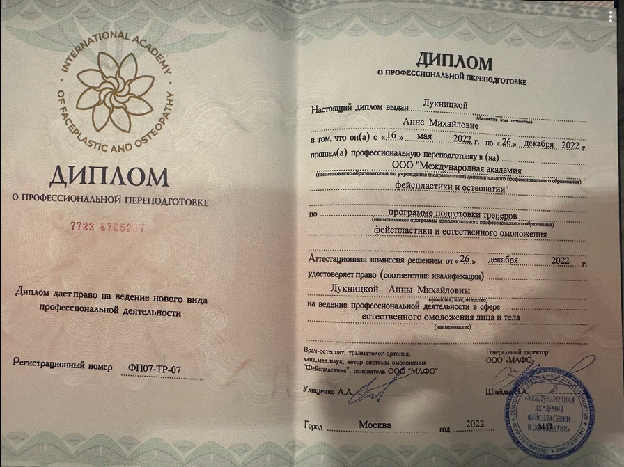 ОбразованиеВуз: Международная Академия Фейспластики и остеопатии '22.
