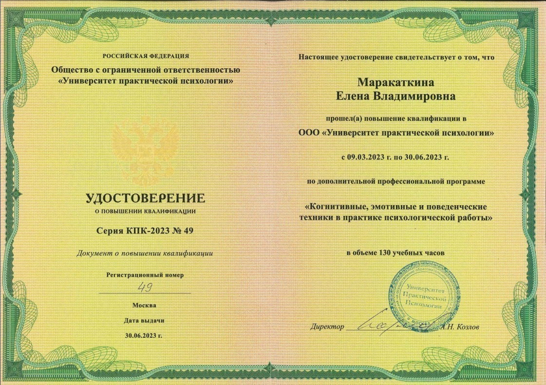 - 2024 год — Университет практической психологии, кризисный психолог.
