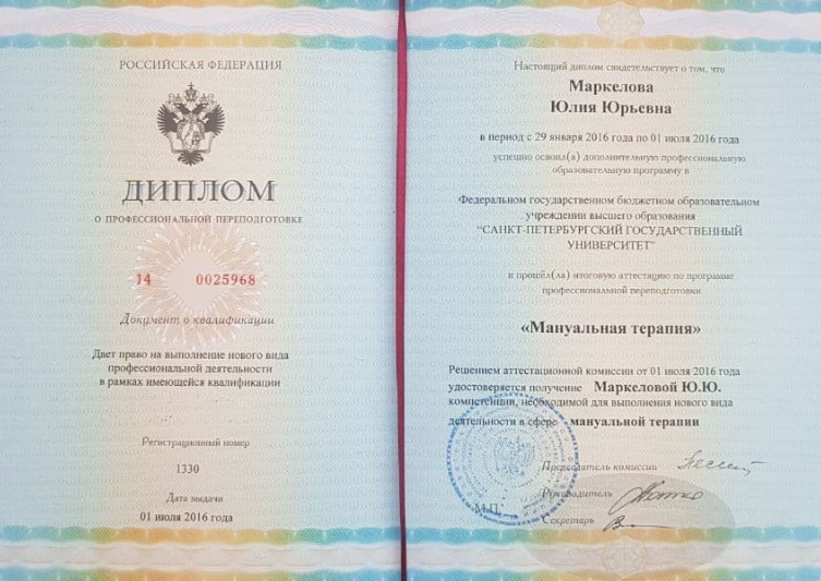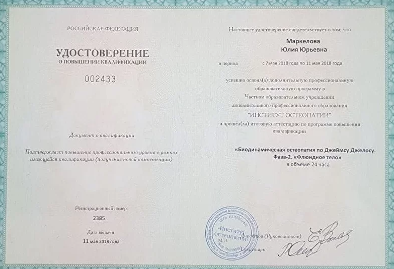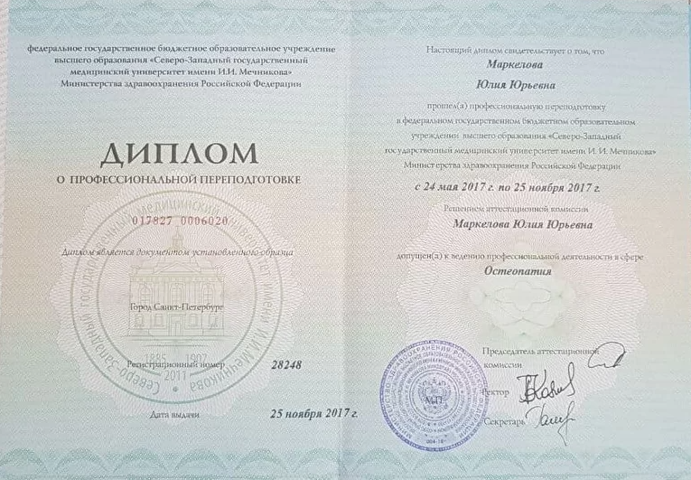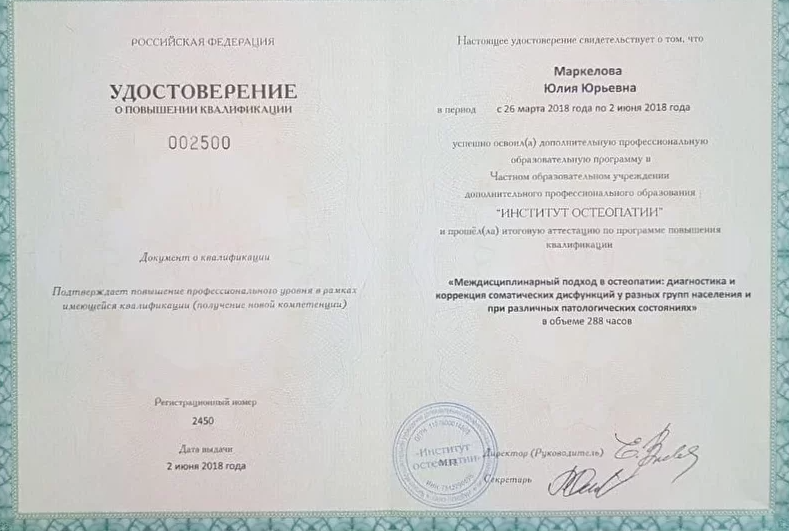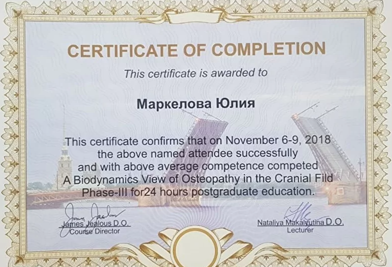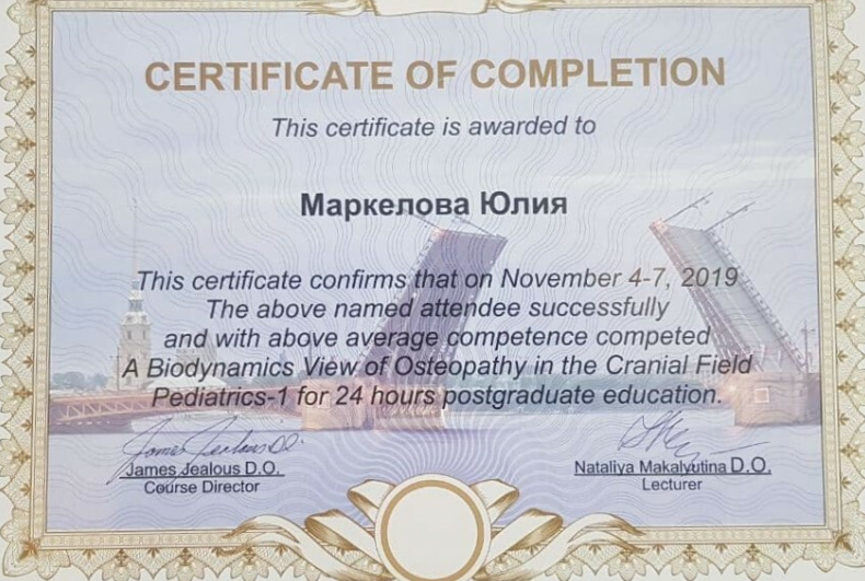 Юлия Маркелова Практикующий сертифицированный остеопат