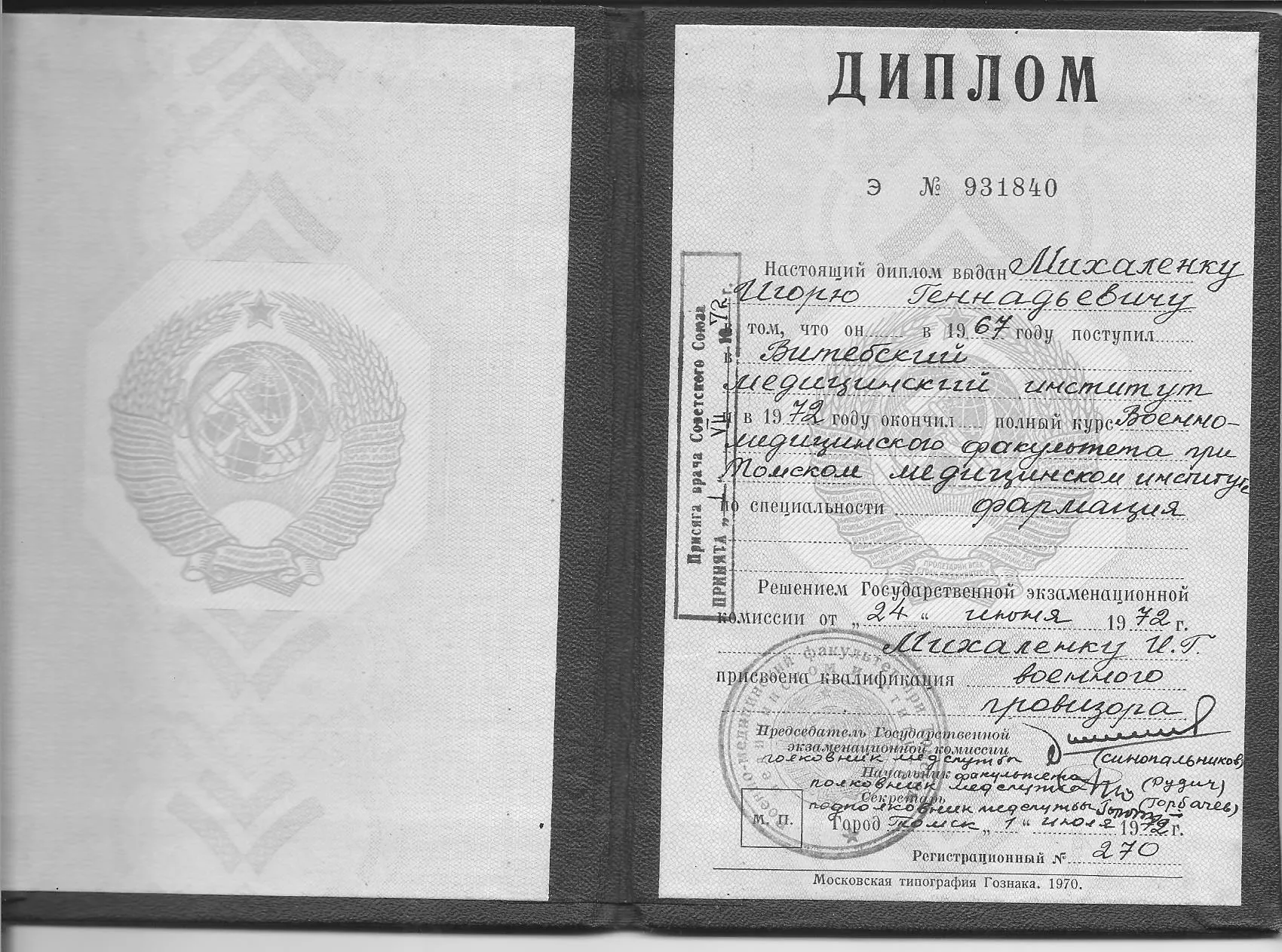 Вуз: Томский мединститут '72, Факультет: Фармацевтический