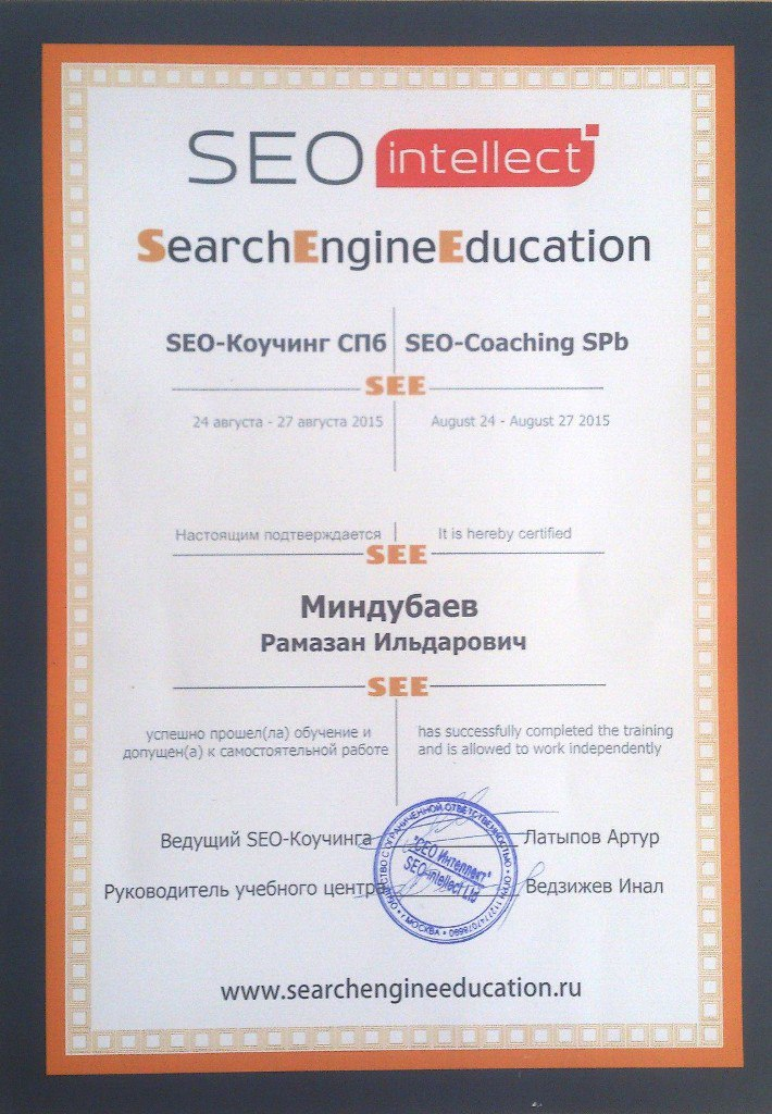 Миндубаев Рамазан: моя работа и моё хобби — это SEO и web-аналитика. Научу продвижению сайтов и интернет-магазинов, web-аналитике, как сделать SEO-оптимизацию сайта, заработать в интернете, а также всему, что связанно с интернет-маркетингом.