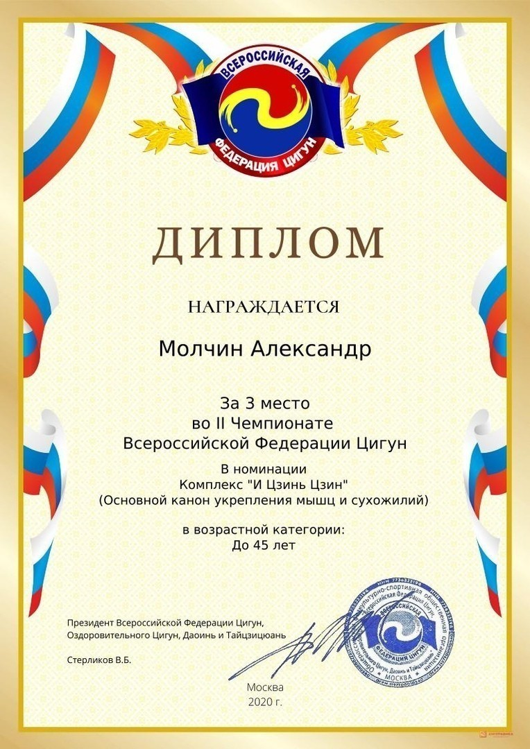 Александр Молчин в 2014 году окончил Белорусский Государственный Университет (специализация – медицинская психология). В 2017 – Институт Конфуция БГУФК (спортивное ушу и тайцзицюань). 2019 – инструкторские курсы по оздоровительному Цигун.