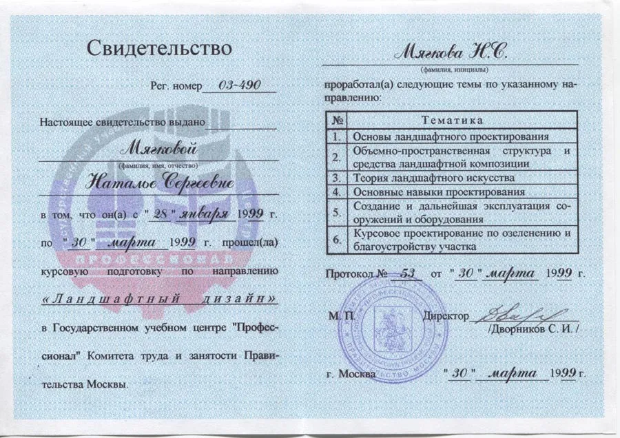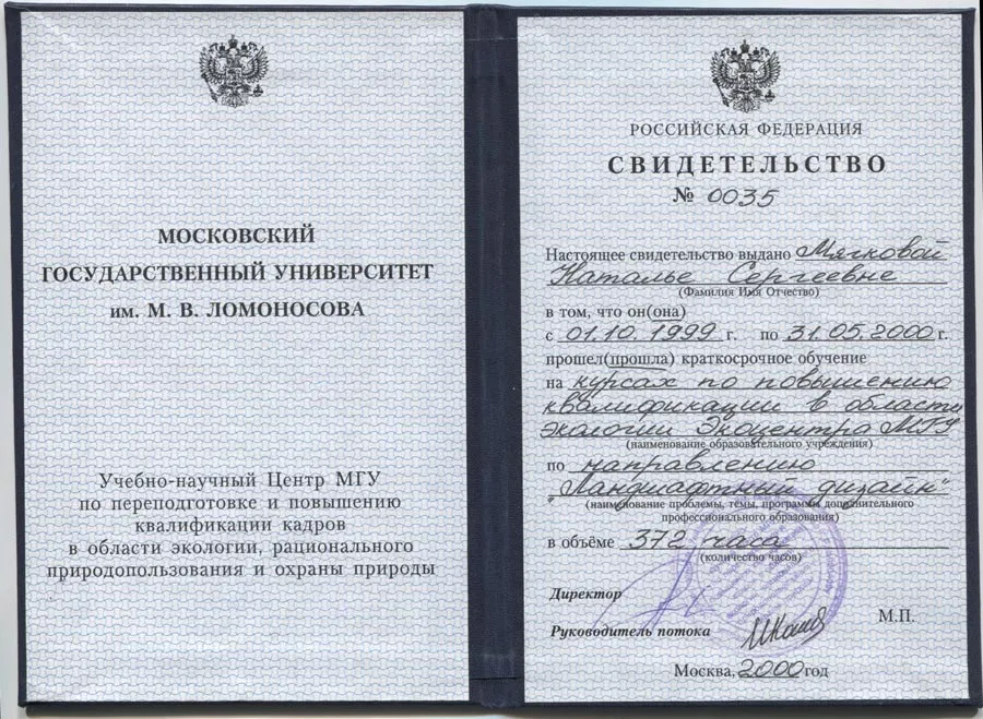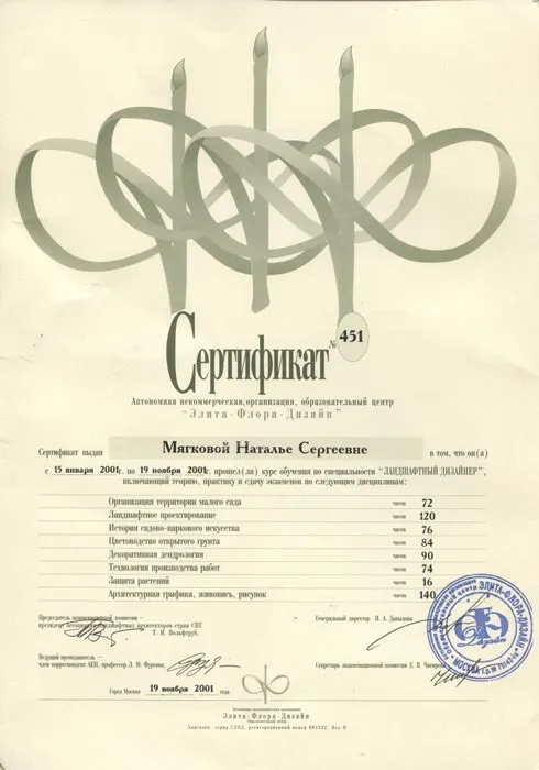 Немного позже мечта все-таки была осуществлена. Наталья Мягкова окончила Тимирязевскую академию на кафедре ландшафтной архитектуры и вот уже почти 20 лет занимается любимым делом профессионально.
