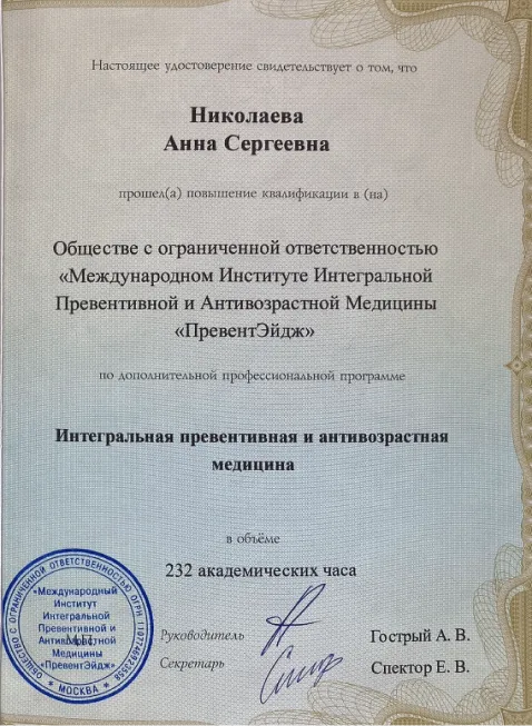 Анна Николаева Доктор функциональной антивозрастной медицины