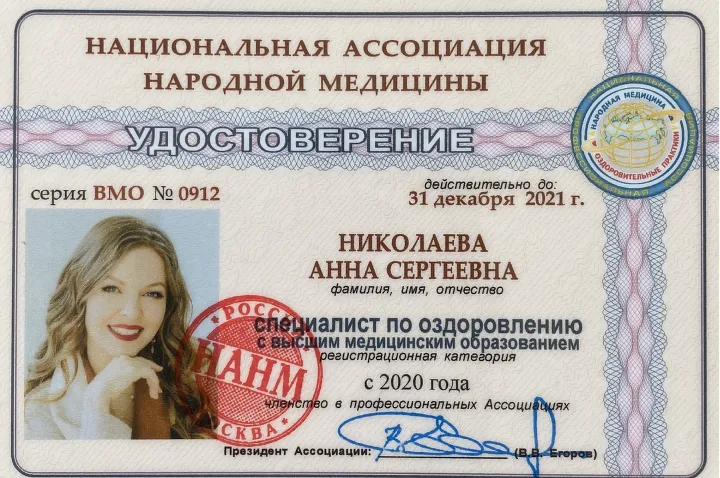 Анна Николаева имеет высшее медицинское образование (Новосибирский медуниверситет). Направления работы: здоровье семьи, диетология, нутрициология. Через свои болезни и проблемы близких, открыла для себя другую медицину – функциональную превентивную. Ей близка ее цель – сохранение здоровья за счет предупреждения заболеваний и старения. Все свои знания и опыт она собирала сама, шаг за шагом, долго и дорого.