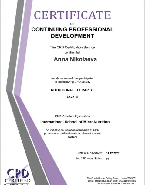 Высшее медицинское образование, сертификация в PreventAge.12 лет консультирования в сфере здоровья. -