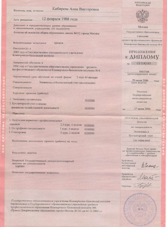 ОбразованиеСсуз: ГОУ СПО Коммерческо-банковский колледж №6 ‘06.