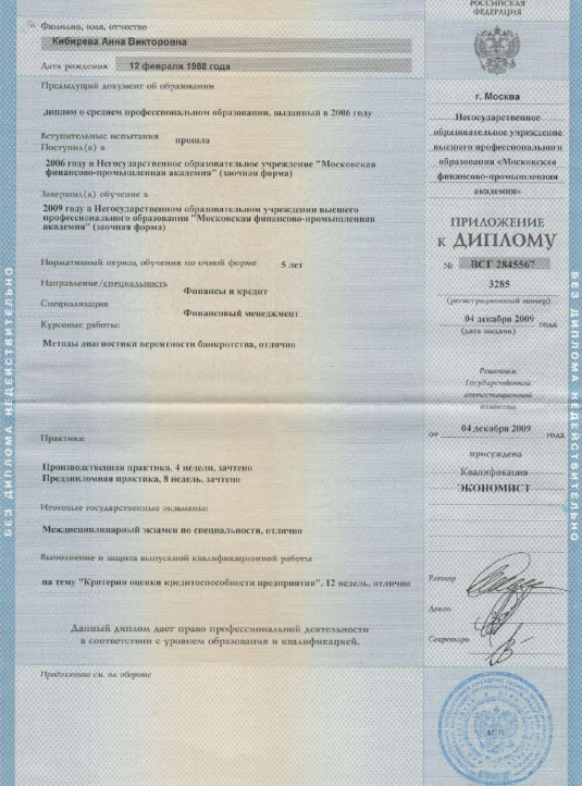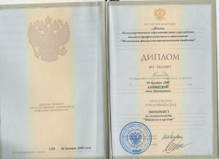 Вуз: НОУ ВПО «Московская финансово-промышленная академия» (Университет «Синергия») ‘10.