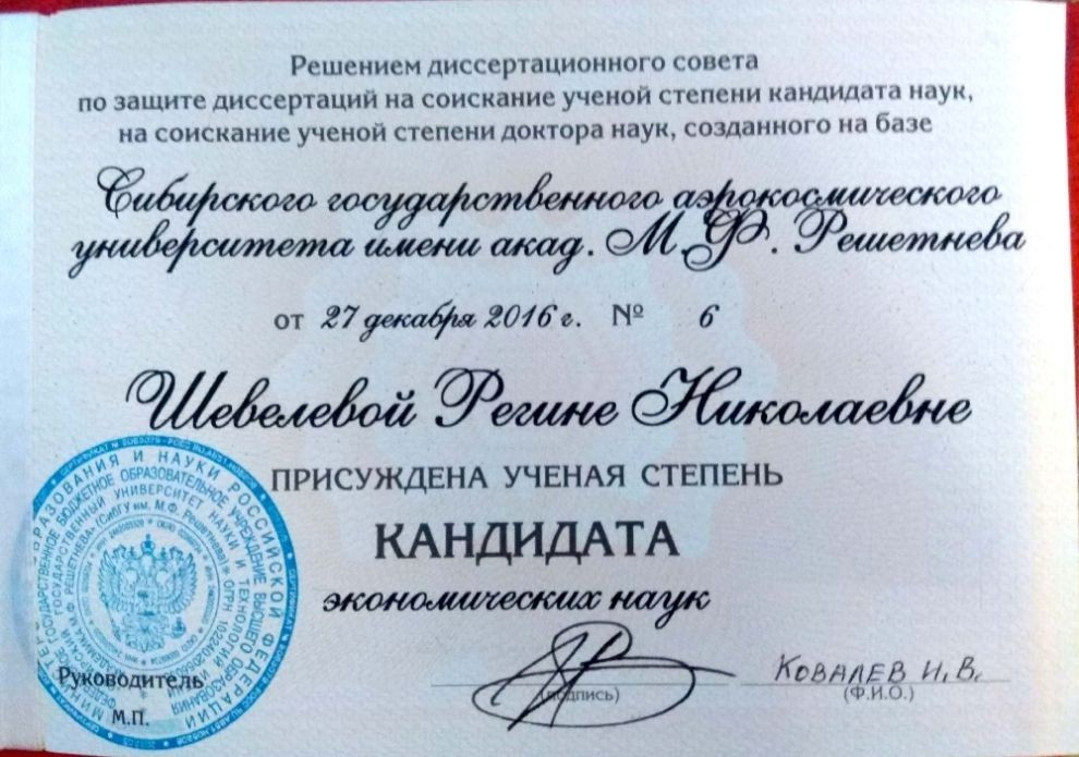 Кандидат экономических наук (научные интересы: отраслевая и региональная экономика, а также стратегическое планирование и управление).