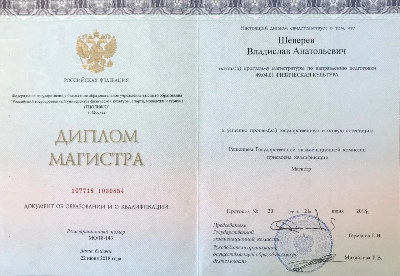 РГУФКСМиТ 2016-2018 гг. ( магистр по физической культуре и спорту, кафедра педагогики). -