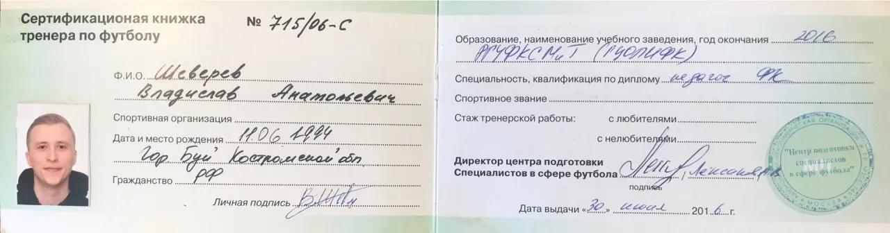 ОбразованиеРГУФКСМиТ 2012-2016 гг. ( бакалавр по физической культуре и спорту, кафедра футбола).