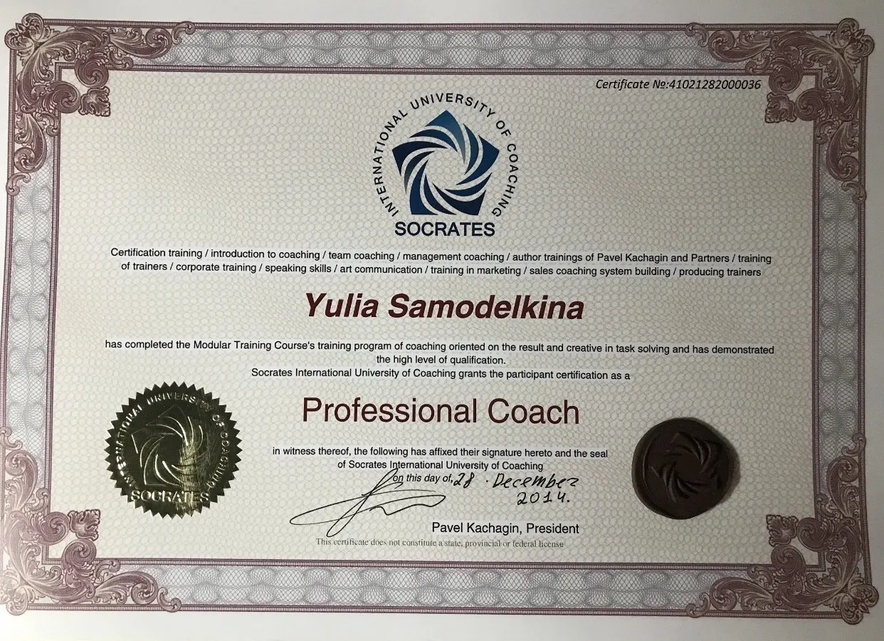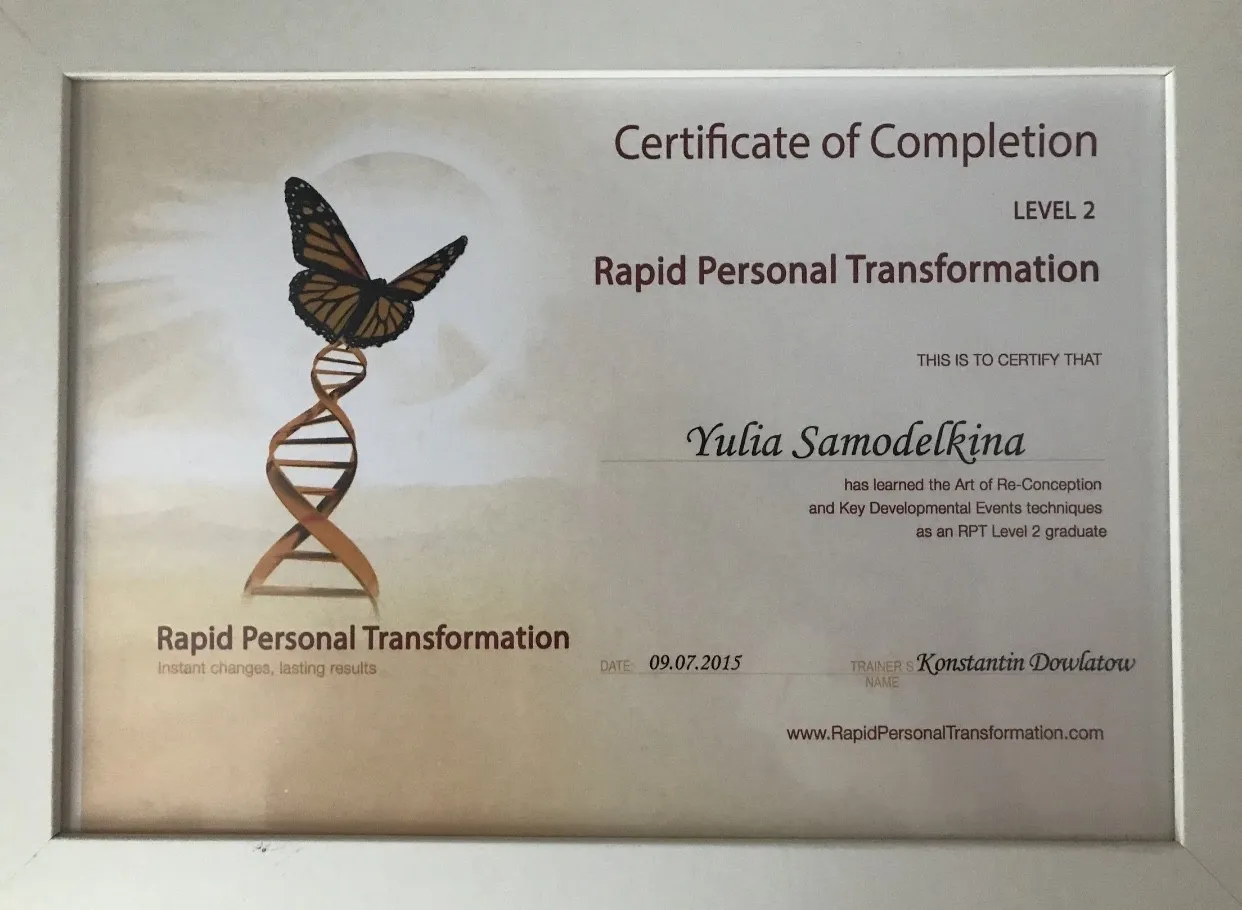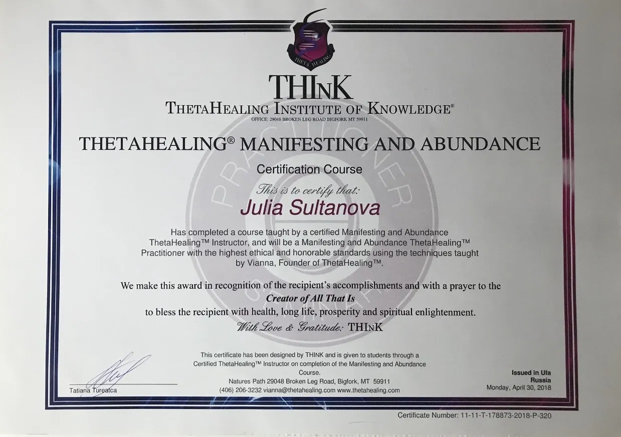 Помогла сотням девушек полюбить себя и создать счастливые отношения.Заработала свой первый миллион в 2016 году.Нашла свою миссию-помогать женщинам быть счастливыми.Имеет команду помощников, умеет делегировать и передавать ответственность.В теме тренингов с 2011 года, обучает женщин- с 2014 года.2015 - участие в качестве женского коуча в телепроекте «Идеальная женщина» на MTVMIX на протяжении 3-х месяцев.Вышла замуж за успешного мужчину.2016 - участие на радио, TV, заработала свой первый миллион.Исцелила у себя кисту с помощью силы мозга.2017 - рождение дочки в воду в партнёрских родах.2018-2020 - создала 4 онлайн курса, выпустила книгу-медитацию «Замуж за Султана. Как встретить любимого мужчину, готового к семье». -