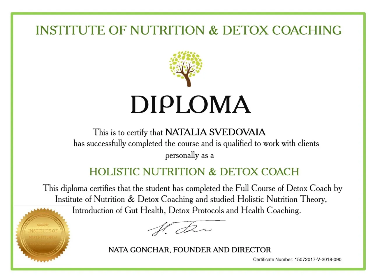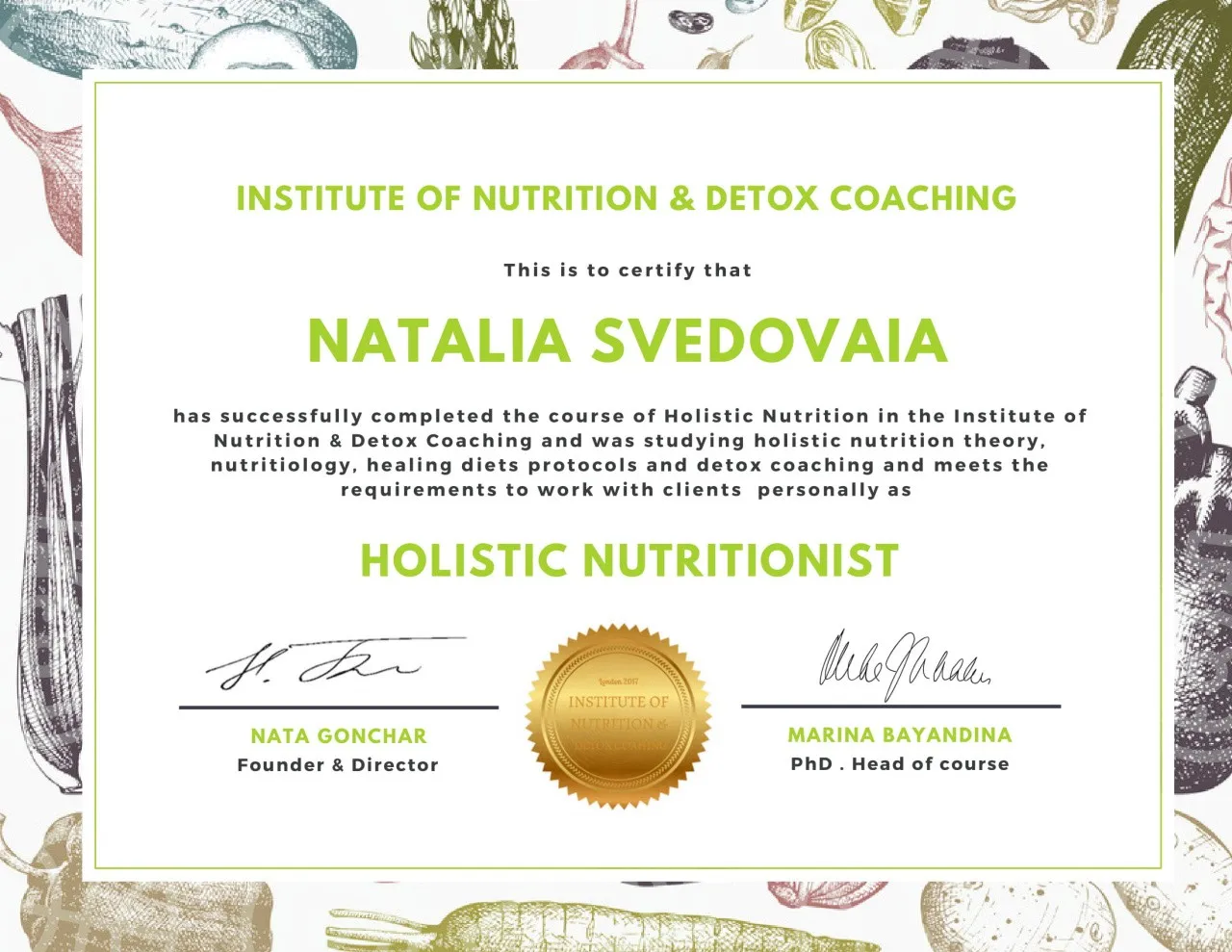 Свой путь к здоровому образу жизни и последовательному очищению организма Наташа Сведовая начала более 13 лет назад. По мере очищения организма, устранения физических блоков, изобилие легко стало проникать в жизнь во всех сферах – творческий, духовный, ментальный, материальный уровень. Осознав, что поток безграничного изобилия не любит блоков в виде шлаков и токсинов, болезней, психотравм, ментальных расстройств, Наталья решила делиться новыми знаниями.