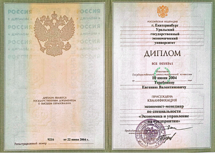 - УрГЭУ, специальность «Экономика и управление на предприятии», 2004 год.