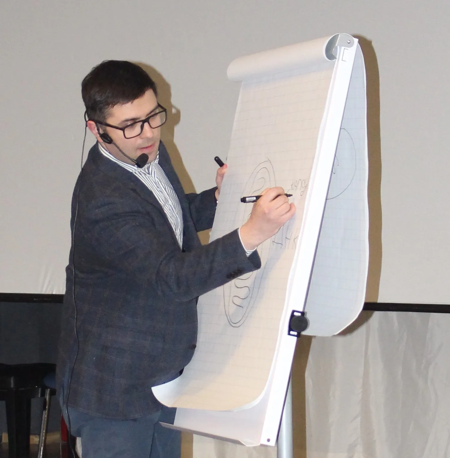 Александр Толмачев родом из Москвы. Имеет образование врача, но всегда чувствовал что предназначение — педагогика. С детьми работает свыше 18 лет. Интерактивные лекции детского лектория посвящены окружающему миру, безопасности ребенка в нем. А еще у Александра есть формат: разборы в виде pdf-карточек для семейного чтения вслух.