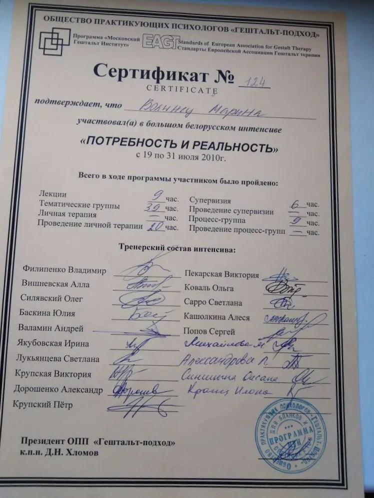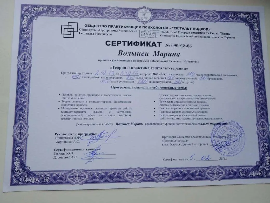 Марина Волынец Клинический психолог, сексолог, гештальт-терапевт