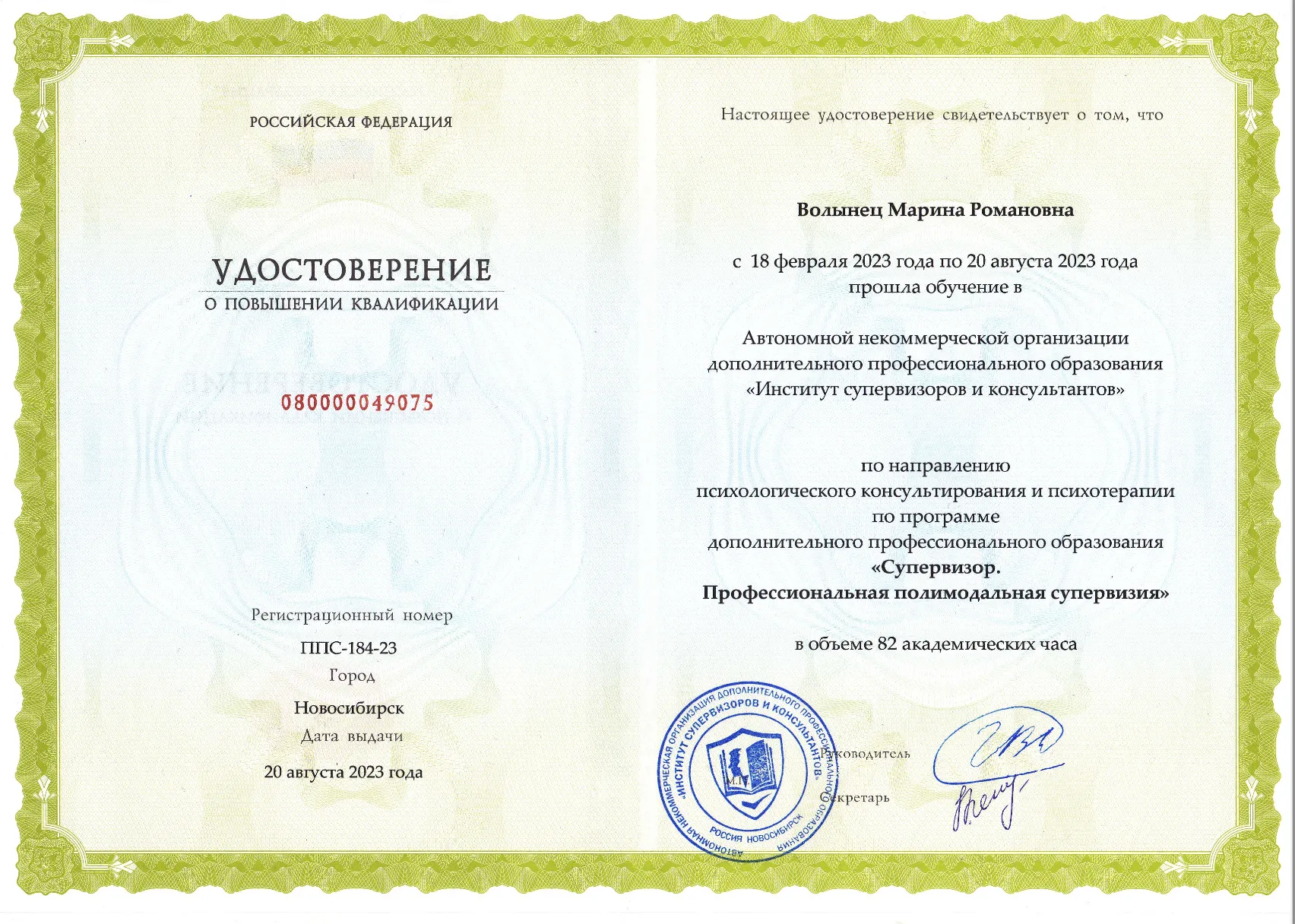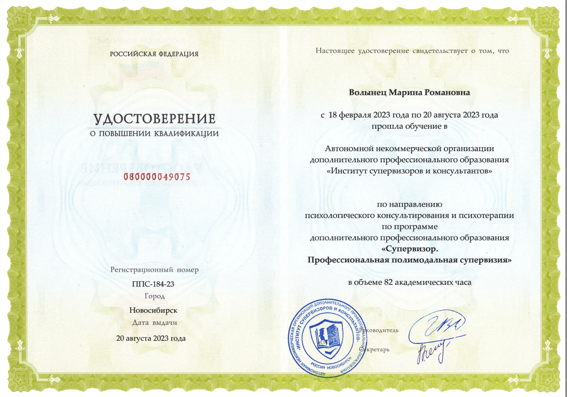 Марина Волынец в детстве мечтала стать дизайнером одежды. Интересовалась творческими направлениями, искусством, любила рисовать. Но взрослый прагматизм победил, и Марина поступила на факультет социальной психологии. С первых месяцев обучения поняла, что ей интересно наблюдать за процессами, понимать суть и основы поведения человека. Проснулась любовь к профессии. Первое образование стало базой, которая позволила ей развиваться дальше.