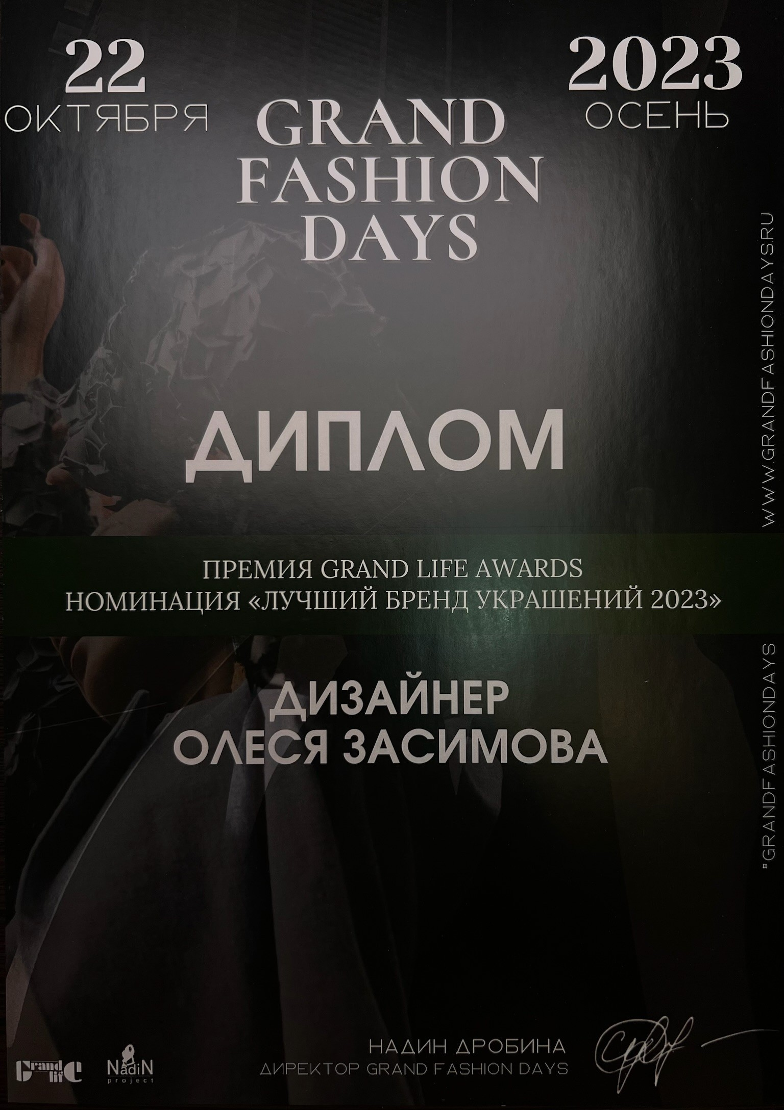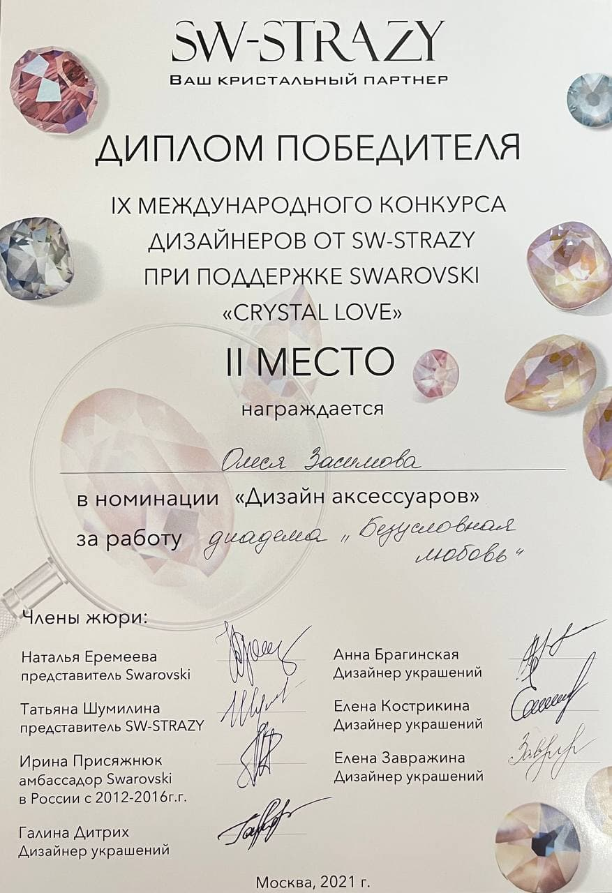 Обладатель премии «Лучший дизайнер украшений» в 2019 году.Победитель конкурса от SW-STRAZY в 2021 году.Эксперт программы первого канала. -