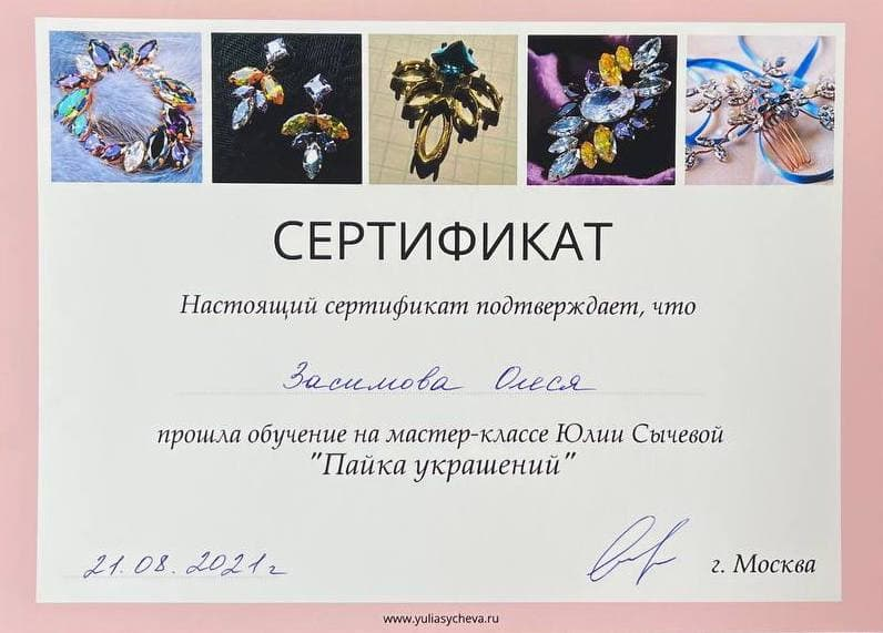 Каждая женщина хочет выглядеть роскошной и желанной. И подчеркнуть красоту помогут украшения. Именно поэтому Олеся Засимова открыла студию, а затем в 2020 году запустила онлайн-школу.