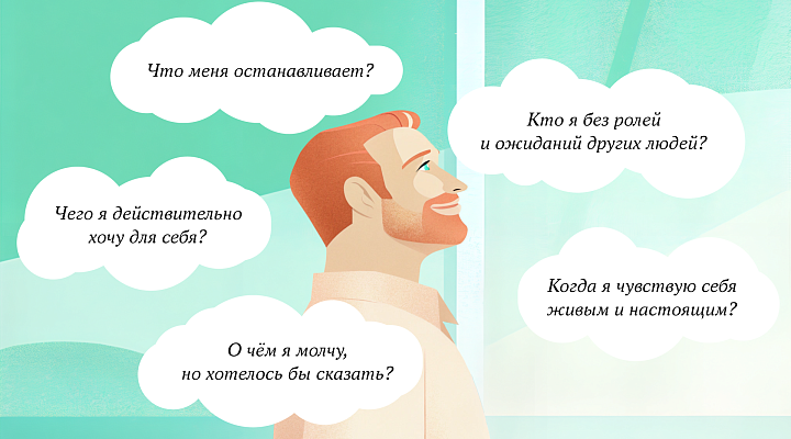 Мы собрали пять простых, но очень точных вопросов, которые помогут заглянуть внутрь себя, лучше понять свои страхи, стремления и ресурсы. Начните с них — и, возможно, уже сегодня вы сделаете первый шаг к жизни, в которой будет больше ясности, смысла и опоры на себя.