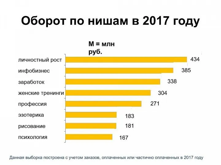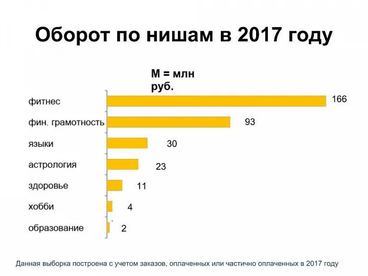 Как раз к конференции Питеринфобиз мы посчитали, у онлайн-школ из каких ниш больше всего пользователей и самые масштабные обороты. Получился вот такой список: