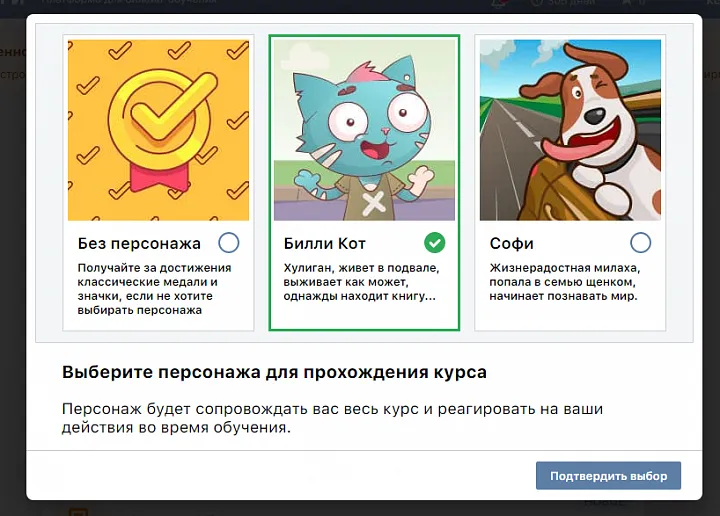 Кота «Хулигана» или Собаку «Милаху», воспользоваться системой «медалей» в обновленном дизайне или предложить своего героя. Для реализации идеи со своим героем, необходимо отрисовать персонажа в соответствии с техническим заданием, которое включает в себя 20 реакций. После этого онлайн-школа получает персонифицированную игрофикацию со своим собственным героем.