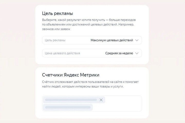 На этом этапе надо определить, какого результата вы ждете от рекламы: больше трафика или конкретных действий от пользователей. От выбранной цели зависит, как система будет управлять показами и на что тратить рекламный бюджет.
