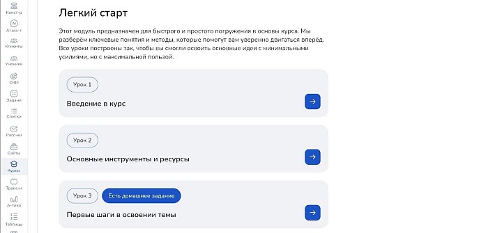 Теперь представьте другой сценарий. Покупатель оплачивает курс и мгновенно получает доступ. Домашние задания проверяются автоматически или кураторами в одном интерфейсе. Система сама напоминает студентам о дедлайнах и подогревает интерес.