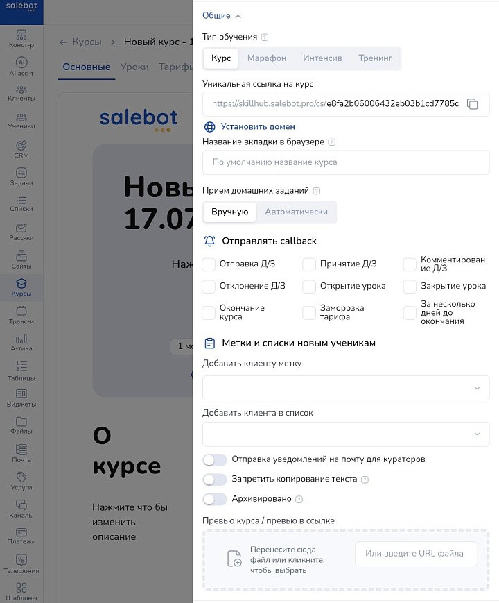 Преимущества конструктора курсов на Salebot