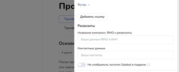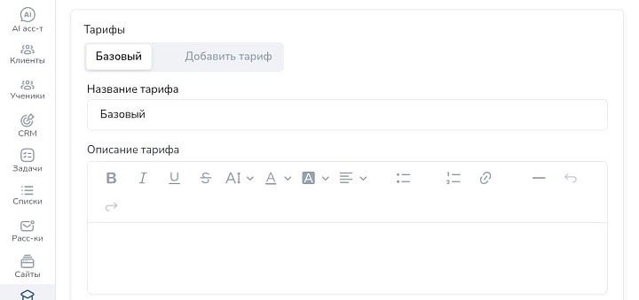 В настройки тарифов укажите стоимость обучения. Пропишите названия и описания тарифов — они будут отображаться и на промостранице.