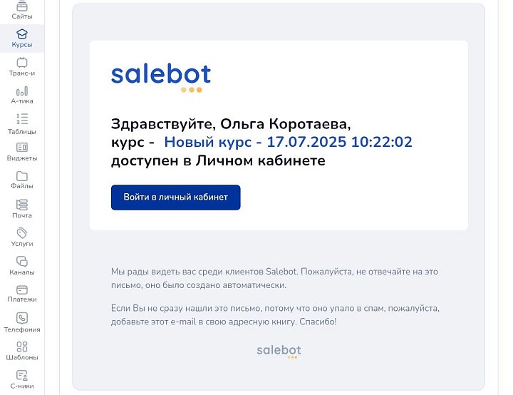 На Salebot можно настраивать курсы так, как вам удобно, интегрировать их с другими системами и автоматизировать процессы взаимодействия с клиентами.
