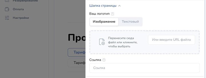 Далее перейдите в «шапку страницы»: загрузите логотип или впишите название компании. Прикрепите ссылку, чтобы люди переходили на сайт.