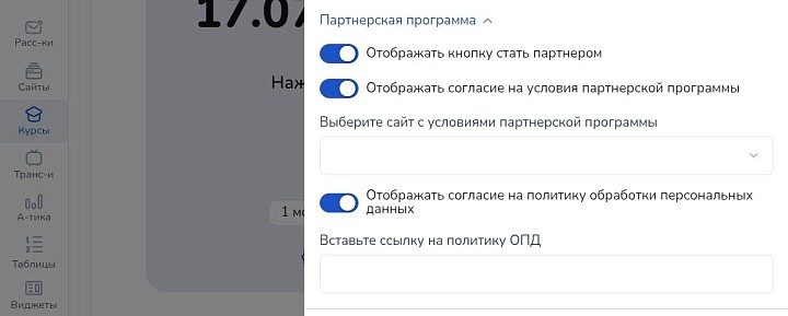 Раздел «Партнерская программа»
