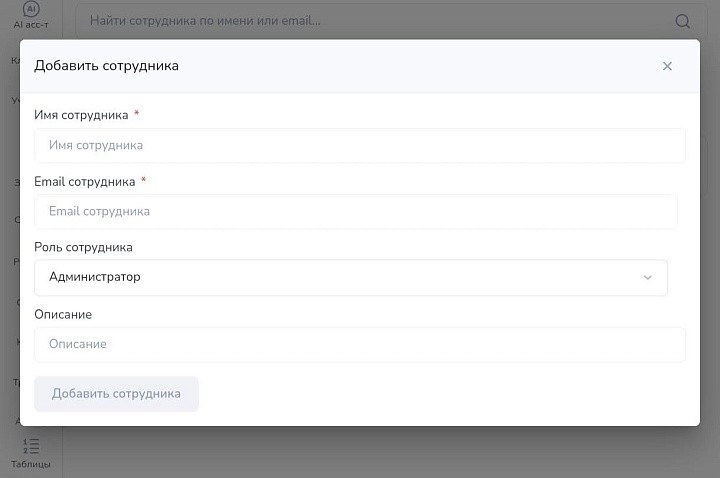 Сначала добавьте кураторов во вкладке «сотрудники» в левом меню: укажите его имя, email, роль и описание, сохраните данные.
