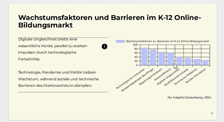 Мы скачали отчет о развитии онлайн-образования и попросили сервис создать слайды на немецком.