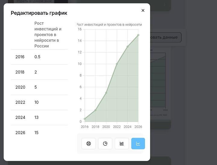 Каждый слайд можно исправлять: менять картинки, переписывать текст или убирать диаграммы.
