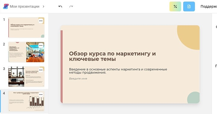 - Используйте встроенные инструменты, генератор текста для спикера, 30+ шаблонов дизайна, удобный редактор, чтобы получилось именно то, что нужно.