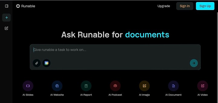 Платформа на базе ИИ, которая позволяет создавать презентации, таблицы с анализом данных, видео, сайты, подкаст, изображения.