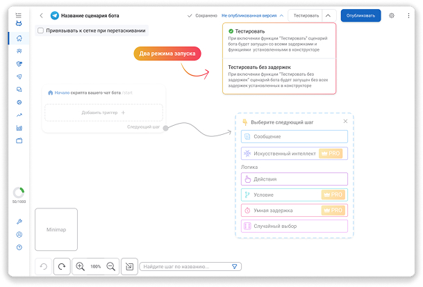 Конструктор для создания чат-ботов и автоматизированных воронок продаж без навыков программирования