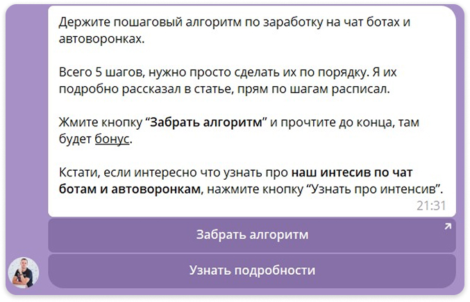 Если вы хотите углубиться в изучение автоворонок, у нас есть два курса в Telegram: