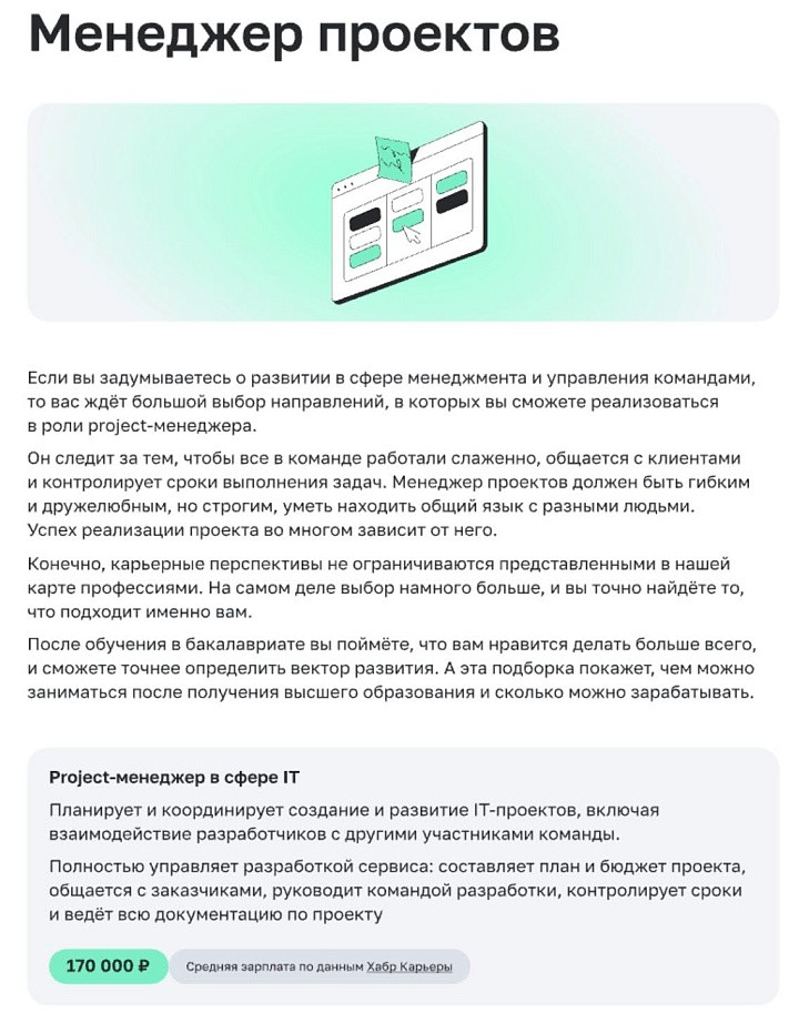 - предлагаются конкретные профессии, в том числе новые, — о них вы могли и не задумываться;