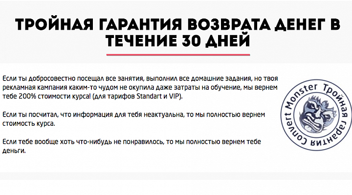 Такая гарантия – один из показателей отличного курса