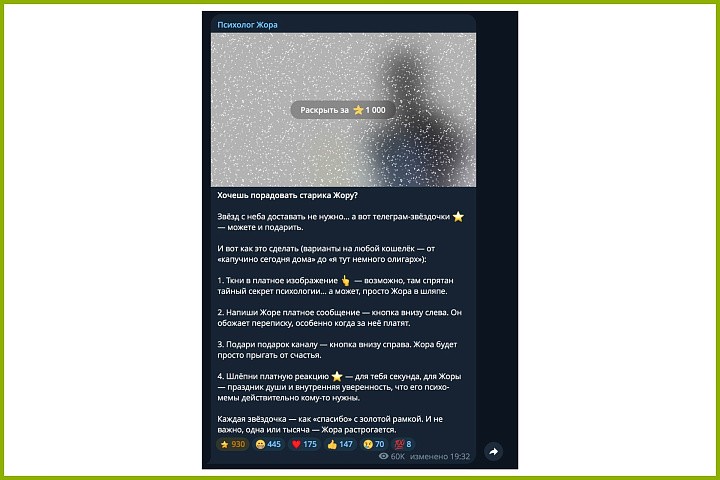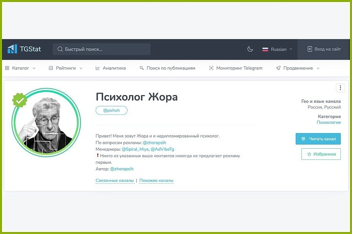 Автор тг-канала @psihzh тоже мог бы успешно монетизировать большую аудиторию через партнерский маркетинг. Реклама курсов приносила бы ему солидный доход, особенно если преподнести ее с юмором: «Жора — недипломированный психолог. А ты пройди программу от Института Smart — не будь как Жора». Узнаваемый тон-оф-войс вызовет доверие и простимулирует покупки.